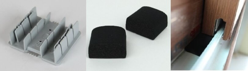 PVC창틀에는 스톱퍼라고 하는 하드웨어가 설치됩니다. 이는 창짝 이동 시 창짝 간에 간섭을 방지하는 용도로 설치가 되며 Track당 상하부 2개소씩 설치하게 되어 있습니다.
